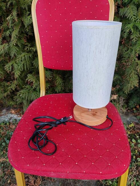 Lampa stołowa z drewnianą podstawą i abażurem. Idealna do oświetlenia biurka lub stolika. Wykonana z wysokiej jakości ...